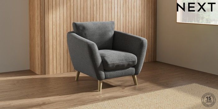 6.12.1 Buy Orlo Relaxed Sit Armchair Chunky Texture Dark Grey Retro Tapered - Light from the Next UK online shop Click here to use our accessible website