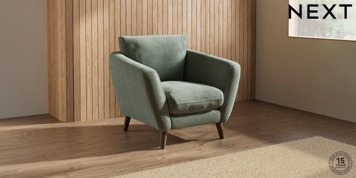 6.12.1 Buy Orlo Relaxed Sit Armchair Chunky Texture Mid Forest Green Retro Tapered - Mid from the Next UK online shop Click here to use our accessible website