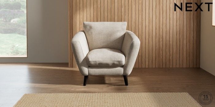 6.12.1 Buy Orlo Relaxed Sit Armchair Chunky Weave Mid Natural Retro Tapered - Dark from the Next UK online shop Click here to use our accessible website