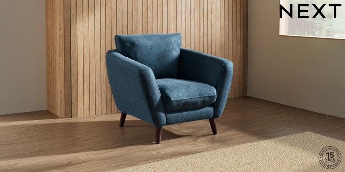 7.0.3 Buy Orlo Relaxed Sit Armchair Cotswold Chenille Dark Blue Retro Tapered - Dark Brown from the Next UK online shop Click here to use our accessible website