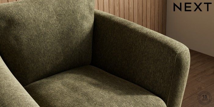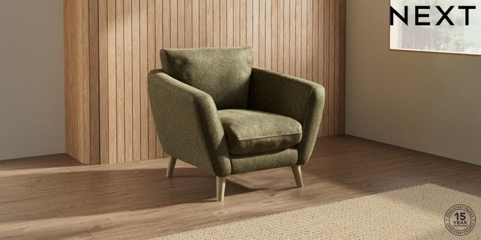 6.12.1 Buy Orlo Relaxed Sit Armchair Cotswold Chenille Dark Green Retro Tapered - Light from the Next UK online shop Click here to use our accessible website