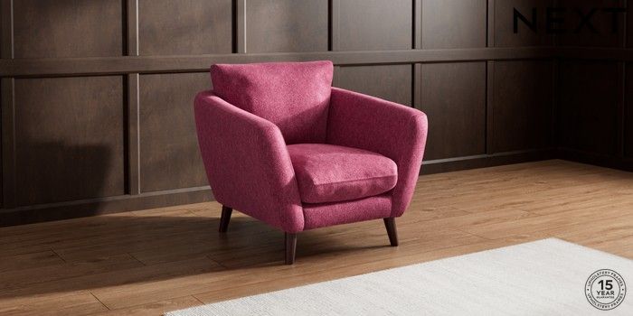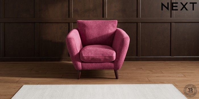 6.12.1 Buy Orlo Relaxed Sit Armchair Cotswold Chenille Dark Raspberry Pink Retro Tapered - Dark Brown from the Next UK online shop Click here to use our accessible website