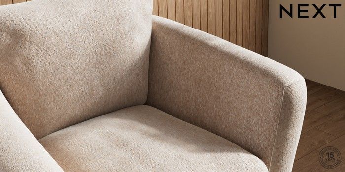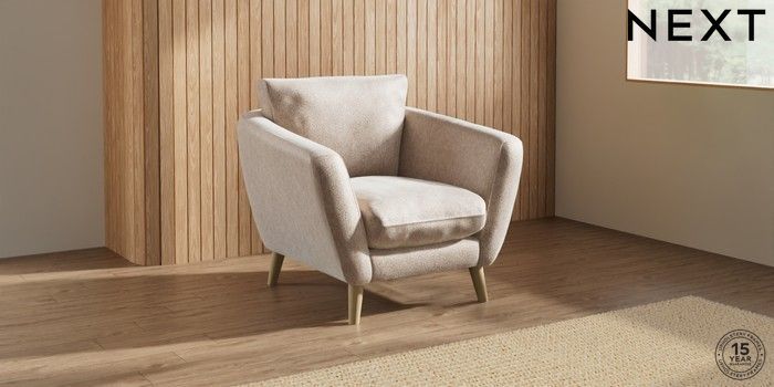 6.12.1 Buy Orlo Relaxed Sit Armchair Cotswold Chenille Light Natural Retro Tapered - Light from the Next UK online shop Click here to use our accessible website