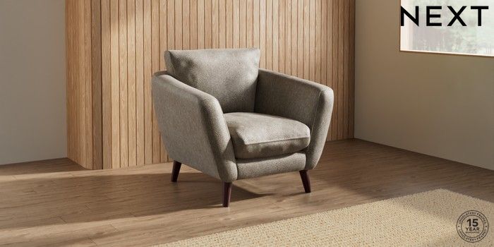 7.0.3 Buy Orlo Relaxed Sit Armchair Cotswold Chenille Mid Mink Brown Retro Tapered - Dark Brown from the Next UK online shop Click here to use our accessible website