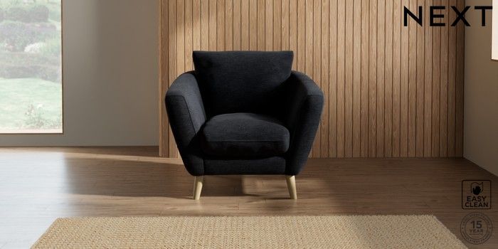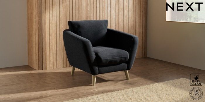 6.12.1 Buy Orlo Relaxed Sit Armchair Fine Chenille Easy Clean Black Retro Tapered - Light from the Next UK online shop Click here to use our accessible website