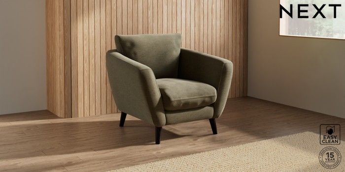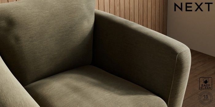 6.12.1 Buy Orlo Relaxed Sit Armchair Fine Chenille Easy Clean Dark Moss Green Retro Tapered - Dark from the Next UK online shop Click here to use our accessible website