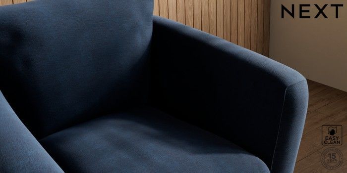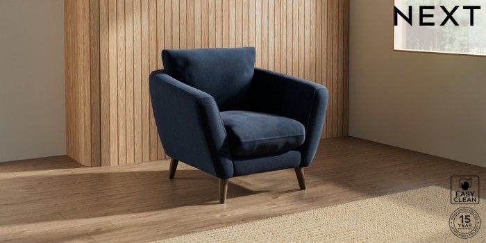 6.12.1 Buy Orlo Relaxed Sit Armchair Fine Chenille Easy Clean Dark Navy Blue Retro Tapered - Mid from the Next UK online shop Click here to use our accessible website