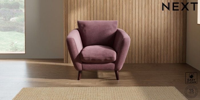 6.12.1 Buy Orlo Relaxed Sit Armchair Fine Chenille Easy Clean Mid Mulberry Purple Retro Tapered - Dark Brown from the Next UK online shop Click here to use our accessible website
