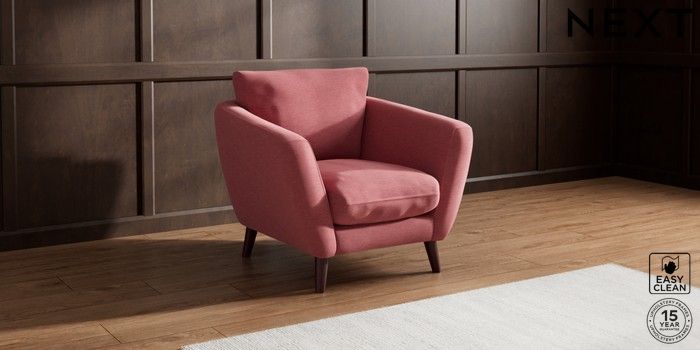 6.12.1 Buy Orlo Relaxed Sit Armchair Fine Chenille Easy Clean Mid Pink Retro Tapered - Dark Brown from the Next UK online shop Click here to use our accessible website