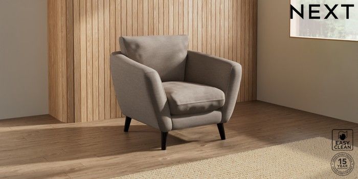 6.12.1 Buy Orlo Relaxed Sit Armchair Fine Chenille Easy Clean Mid Taupe Brown Retro Tapered - Dark from the Next UK online shop Click here to use our accessible website