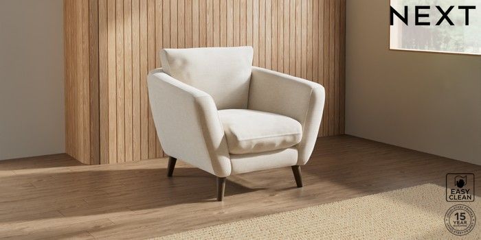 6.12.1 Buy Orlo Relaxed Sit Armchair Fine Chenille Easy Clean Oyster Retro Tapered - Mid from the Next UK online shop Click here to use our accessible website