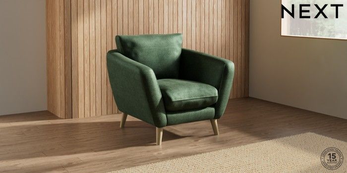 6.12.1 Buy Orlo Relaxed Sit Armchair Luxe Chenille Dark Green Retro Tapered - Light from the Next UK online shop Click here to use our accessible website