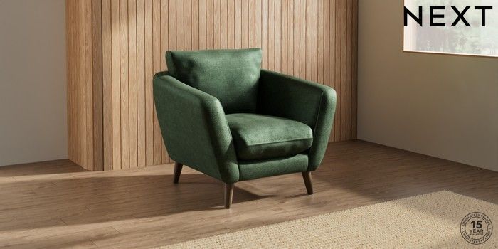 6.12.1 Buy Orlo Relaxed Sit Armchair Luxe Chenille Dark Green Retro Tapered - Mid from the Next UK online shop Click here to use our accessible website