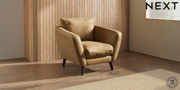 7.0.3 Buy Orlo Relaxed Sit Armchair Luxe Chenille Honey Yellow Retro Tapered - Dark Brown from the Next UK online shop Click here to use our accessible website