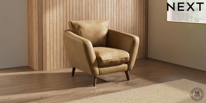 7.0.3 Buy Orlo Relaxed Sit Armchair Luxe Chenille Honey Yellow Retro Tapered - Mid from the Next UK online shop Click here to use our accessible website