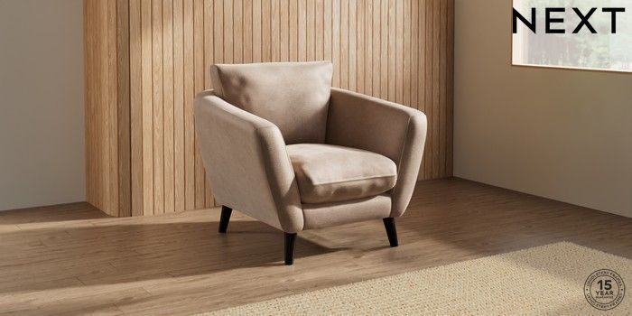 6.12.1 Buy Orlo Relaxed Sit Armchair Luxe Chenille Mid Natural Retro Tapered - Dark from the Next UK online shop Click here to use our accessible website