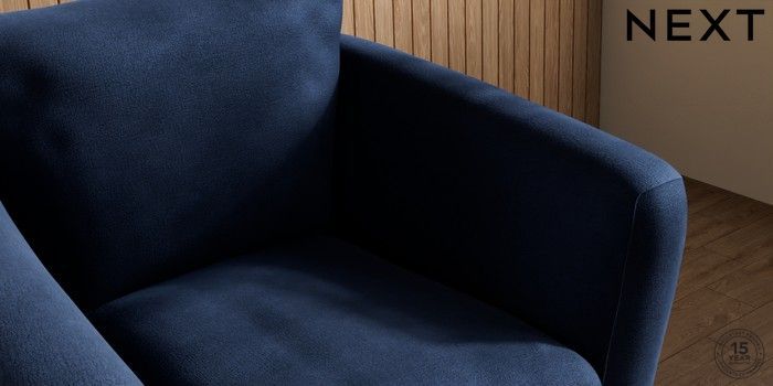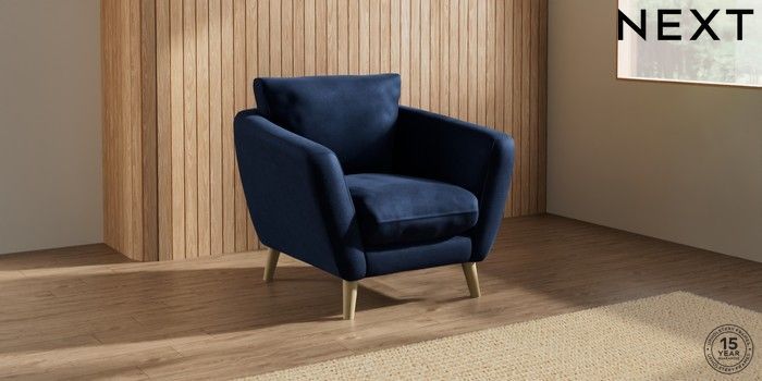 6.12.1 Buy Orlo Relaxed Sit Armchair Luxe Chenille Navy Blue Retro Tapered - Light from the Next UK online shop Click here to use our accessible website