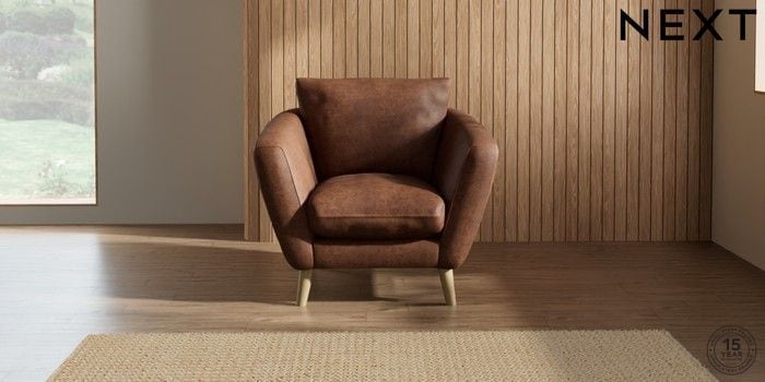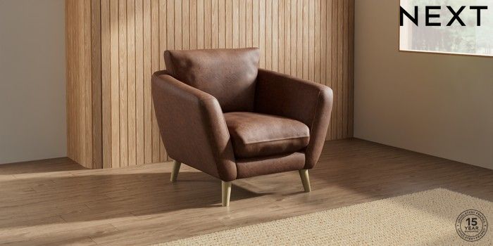 6.12.1 Buy Orlo Relaxed Sit Armchair Monza Faux Leather Easy Clean Chestnut Brown Retro Tapered - Light from the Next UK online shop Click here to use our accessible website