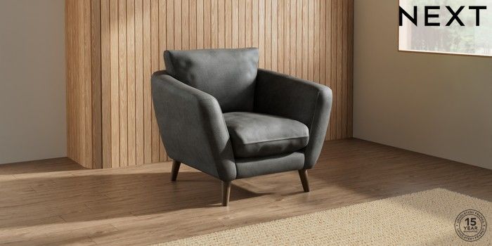 6.12.1 Buy Orlo Relaxed Sit Armchair Monza Faux Leather Easy Clean Dark Grey Retro Tapered - Mid from the Next UK online shop Click here to use our accessible website