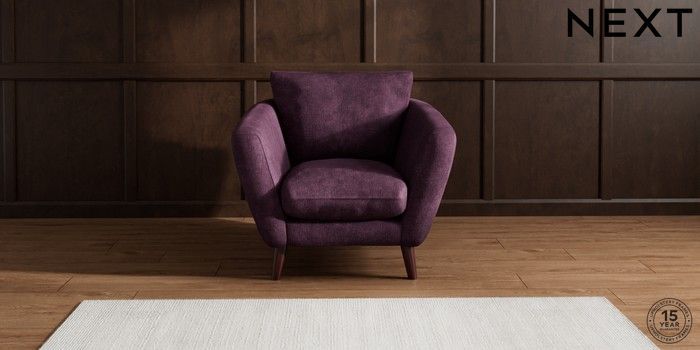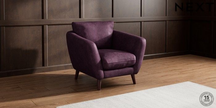 6.12.1 Buy Orlo Relaxed Sit Armchair Plush Chenille Dark Plum Purple Retro Tapered - Dark Brown from the Next UK online shop Click here to use our accessible website