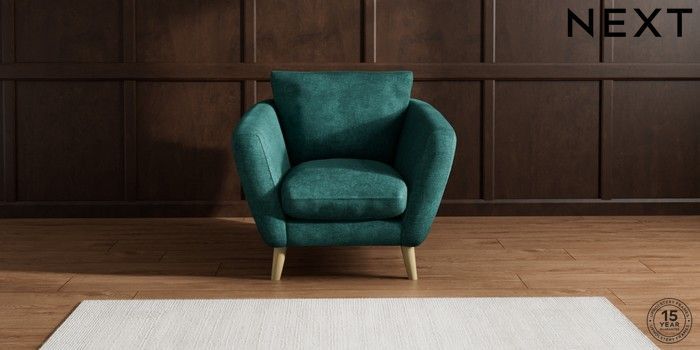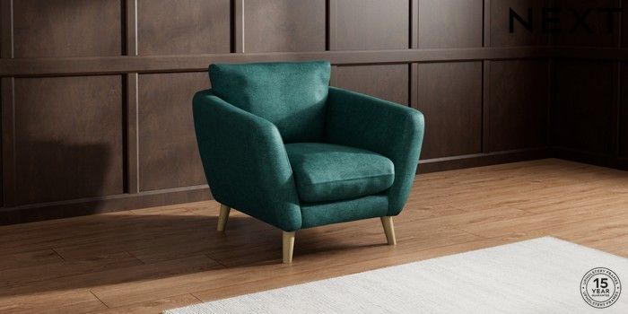 6.12.1 Buy Orlo Relaxed Sit Armchair Plush Chenille Dark Teal Green Retro Tapered - Light from the Next UK online shop Click here to use our accessible website