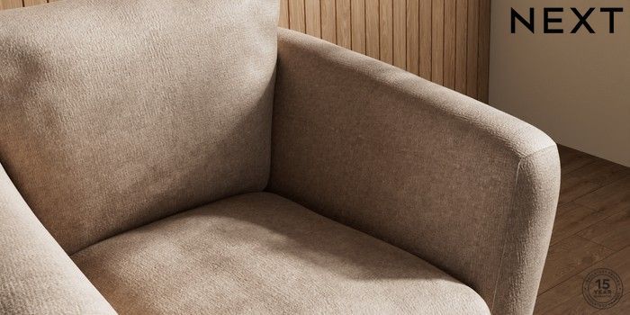 6.12.1 Buy Orlo Relaxed Sit Armchair Plush Chenille Mid Natural Retro Tapered - Dark from the Next UK online shop Click here to use our accessible website