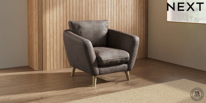 6.12.1 Buy Orlo Relaxed Sit Armchair Plush Chenille Mink Brown Retro Tapered - Light from the Next UK online shop Click here to use our accessible website