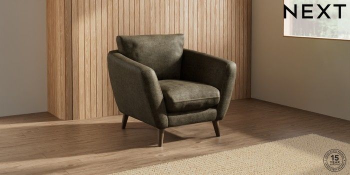 6.12.1 Buy Orlo Relaxed Sit Armchair Plush Chenille Moss Green Retro Tapered - Mid from the Next UK online shop Click here to use our accessible website