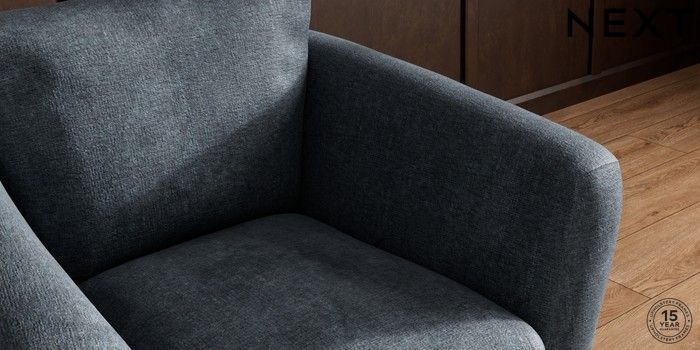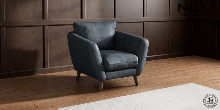 6.12.1 Buy Orlo Relaxed Sit Armchair Plush Chenille Slate Blue Retro Tapered - Mid from the Next UK online shop Click here to use our accessible website