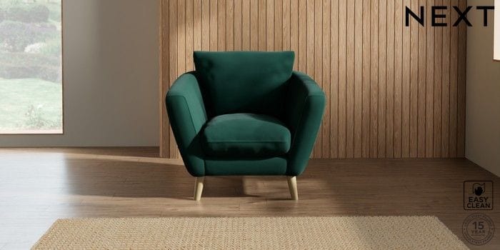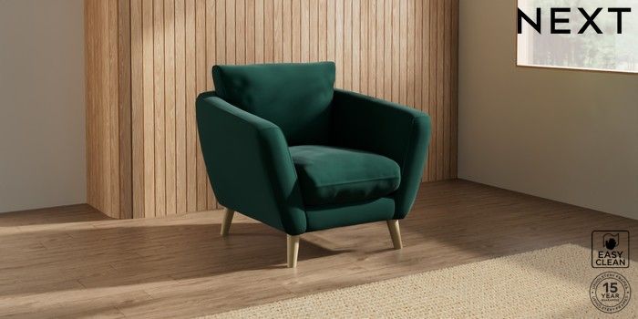 6.12.1 Buy Orlo Relaxed Sit Armchair Plush Velvet Easy Clean Bottle Green Retro Tapered - Light from the Next UK online shop Click here to use our accessible website