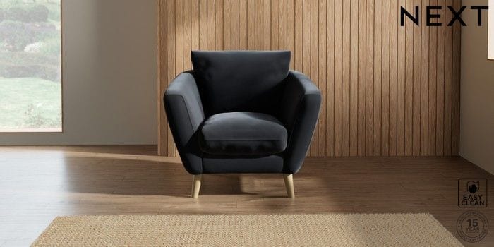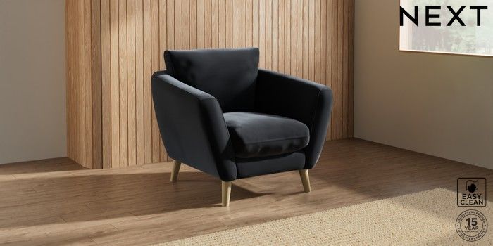 6.12.1 Buy Orlo Relaxed Sit Armchair Plush Velvet Easy Clean Charcoal Grey Retro Tapered - Light from the Next UK online shop Click here to use our accessible website