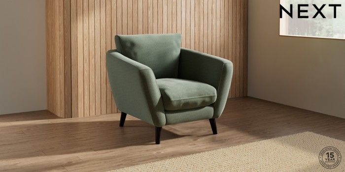 6.12.1 Buy Orlo Relaxed Sit Armchair Relaxed Linen Look Dark Green Retro Tapered - Dark from the Next UK online shop Click here to use our accessible website