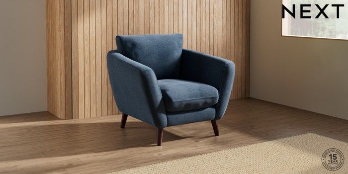 7.0.3 Buy Orlo Relaxed Sit Armchair Ripple Chenille Dark Blue Retro Tapered - Dark Brown from the Next UK online shop Click here to use our accessible website