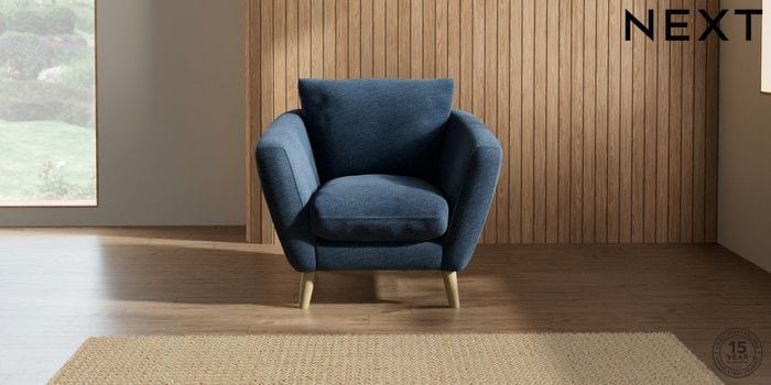 6.12.1 Buy Orlo Relaxed Sit Armchair Ripple Chenille Dark Blue Retro Tapered - Light from the Next UK online shop Click here to use our accessible website
