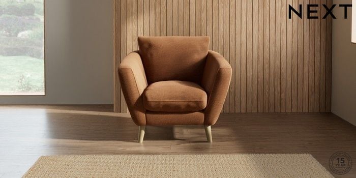 6.12.1 Buy Orlo Relaxed Sit Armchair Ripple Chenille Mid Rust Brown Retro Tapered - Light from the Next UK online shop Click here to use our accessible website