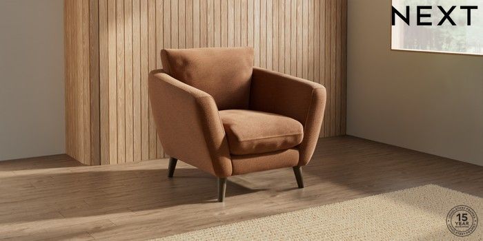 7.0.3 Buy Orlo Relaxed Sit Armchair Ripple Chenille Mid Rust Brown Retro Tapered - Mid from the Next UK online shop Click here to use our accessible website