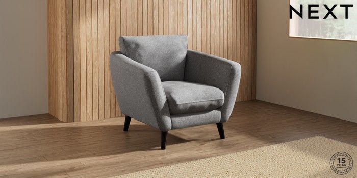 6.12.1 Buy Orlo Relaxed Sit Armchair Studio Chenille Mid Grey Retro Tapered - Dark from the Next UK online shop Click here to use our accessible website