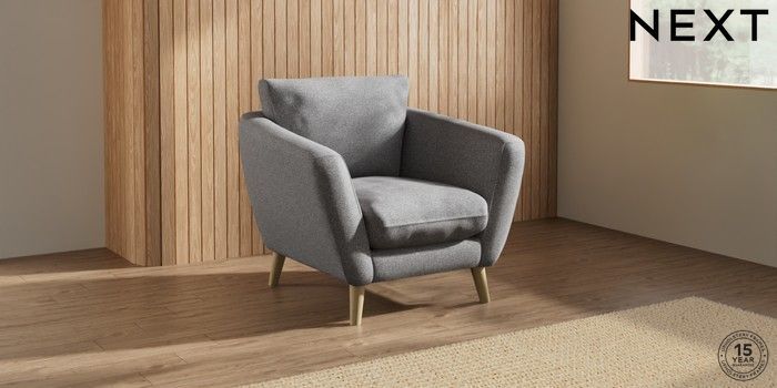 6.12.1 Buy Orlo Relaxed Sit Armchair Studio Chenille Mid Grey Retro Tapered - Light from the Next UK online shop Click here to use our accessible website