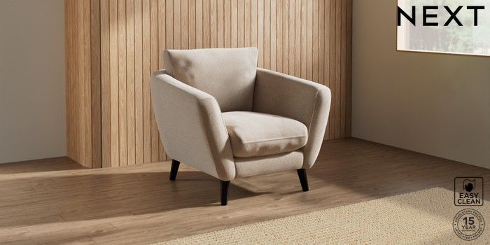6.12.1 Buy Orlo Relaxed Sit Armchair Tweedy Blend Easy Clean Light Dove Natural Retro Tapered - Dark from the Next UK online shop Click here to use our accessible website
