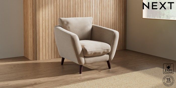6.12.1 Buy Orlo Relaxed Sit Armchair Tweedy Blend Easy Clean Light Dove Natural Retro Tapered - Dark Brown from the Next UK online shop Click here to use our accessible website