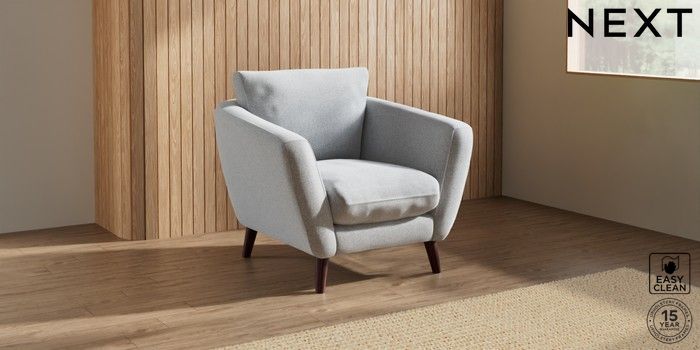 6.12.1 Buy Orlo Relaxed Sit Armchair Tweedy Blend Easy Clean Light Silver Grey Retro Tapered - Dark Brown from the Next UK online shop Click here to use our accessible website