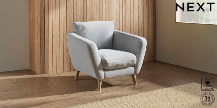 6.12.1 Buy Orlo Relaxed Sit Armchair Tweedy Blend Easy Clean Light Silver Grey Retro Tapered - Light from the Next UK online shop Click here to use our accessible website