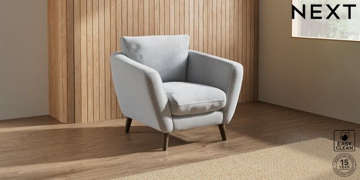 6.12.1 Buy Orlo Relaxed Sit Armchair Tweedy Blend Easy Clean Light Silver Grey Retro Tapered - Mid from the Next UK online shop Click here to use our accessible website