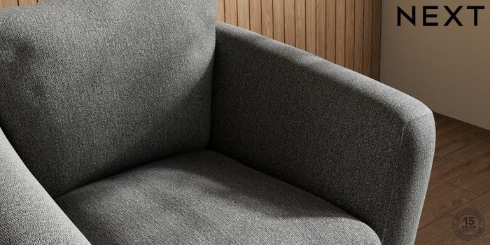 6.12.1 Buy Orlo Relaxed Sit Armchair Tweedy Chenille Dark Grey Retro Tapered - Dark Brown from the Next UK online shop Click here to use our accessible website