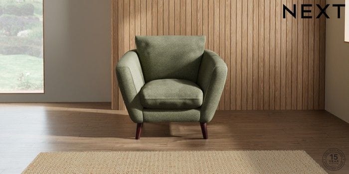 6.12.1 Buy Orlo Relaxed Sit Armchair Tweedy Chenille Mid Moss Green Retro Tapered - Dark Brown from the Next UK online shop Click here to use our accessible website