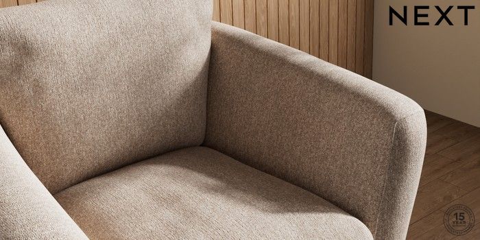 6.12.1 Buy Orlo Relaxed Sit Armchair Tweedy Chenille Mid Natural Retro Tapered - Dark Brown from the Next UK online shop Click here to use our accessible website