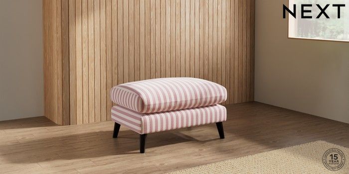 7.3.1 Buy Orlo Relaxed Sit Footstool Bold Chenille Stripe Dark Pink Retro Tapered - Dark from the Next UK online shop Click here to use our accessible website
