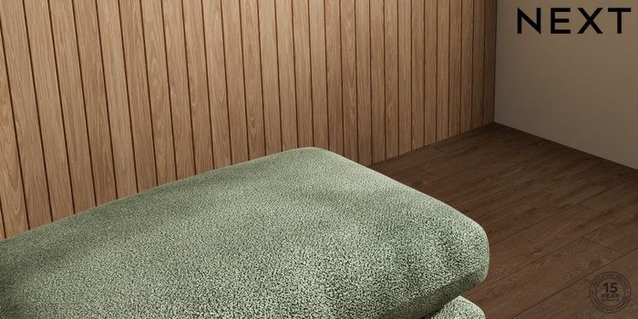 6.12.1 Buy Orlo Relaxed Sit Footstool Boucle Chenille Dark Moss Green Retro Tapered - Dark Brown from the Next UK online shop Click here to use our accessible website