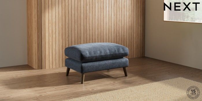 6.12.1 Buy Orlo Relaxed Sit Footstool Boucle Chenille Dark Slate Blue Retro Tapered - Mid from the Next UK online shop Click here to use our accessible website