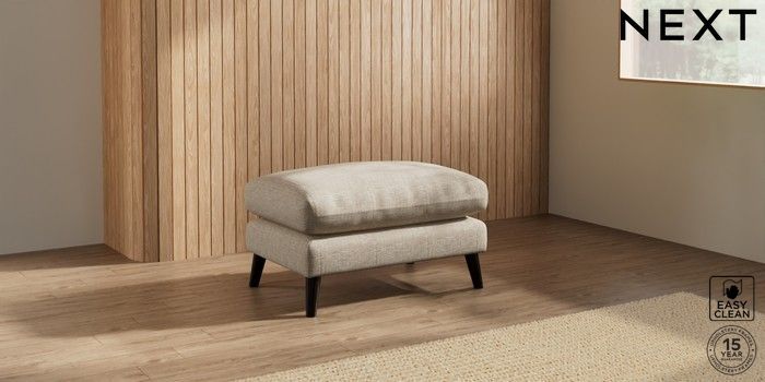 6.12.1 Buy Orlo Relaxed Sit Footstool Boucle Weave Easy Clean Dark Natural Retro Tapered - Dark from the Next UK online shop Click here to use our accessible website